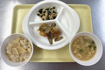 幼稚園のお友達と同じ給食も食べたよ🍴 楽しい1日だったね
