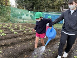 植えた時よりだいぶ成長しましたが、まだまだ大きなカブになるには時間がかかりそうだねとお話をしていました😌