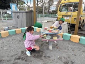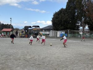 土の園庭ではサッカーや砂場などで楽しく遊びました😆