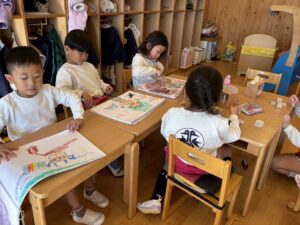 昨日からマラソンの練習も始まり、気合十分のうめさん💚来週からは調整池での練習も始まってくるので、体調を整えながら過ごしていけたらいいなと思います🏃♂️ 今日の午後はお部屋でゆっくり過ごしました🦥ꔛ お友だちとコマ対決をしたり、、 お絵描き、つみき、、 王様もたくさんいました👑 ゆっくり過ごせてよかったね👍🏻 3日間お休みがあるけど、体調を崩さないように楽しんで、また来週会おうね🥳