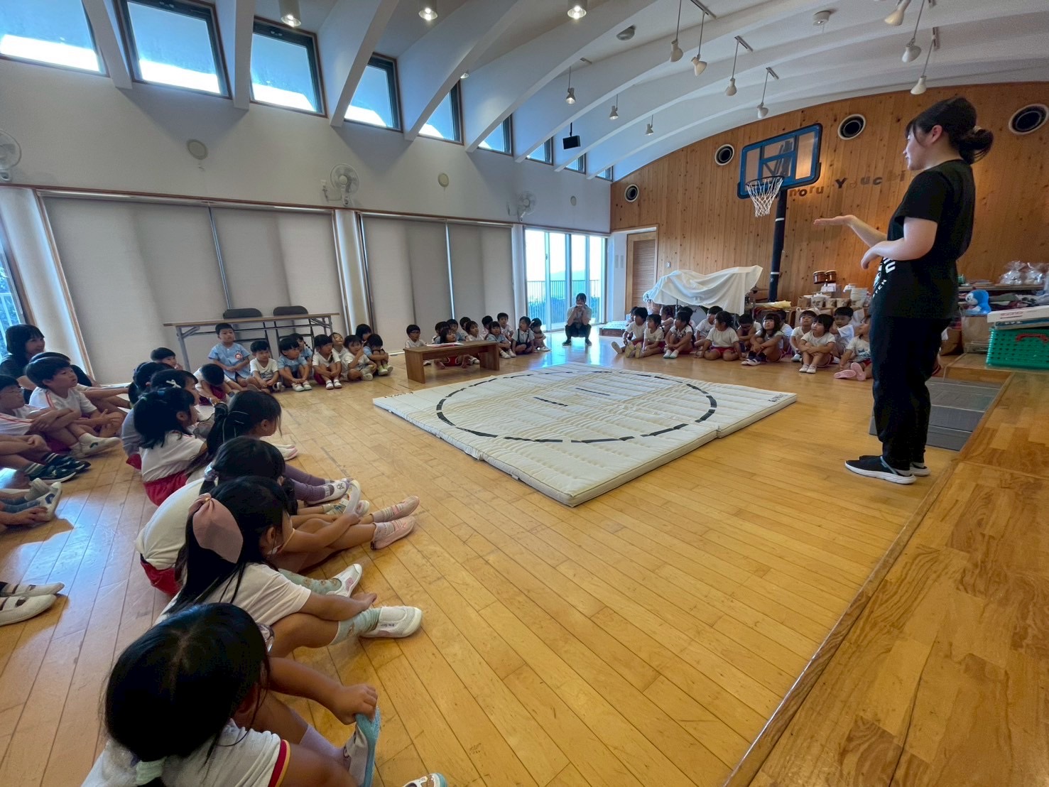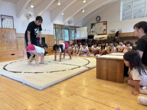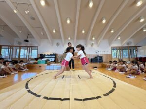 今日からおすもうの練習が始まり、最初にたんぽぽさんとすみれさんにお手本としてホールで行いました🤲🏻