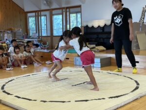 もう少しで10月ですが、まだまだ汗ばむ日が続いていますね😞10月は楽しみな行事がたくさんあり、その中でもおすもう大会ではとっても気合いが入ってる年長さんです!🔥