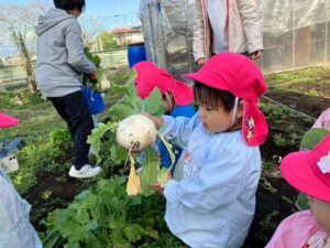 まずはお昼の豚汁に入れる育てていたお野菜を