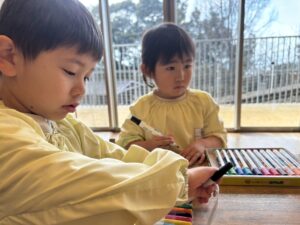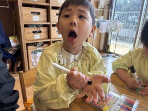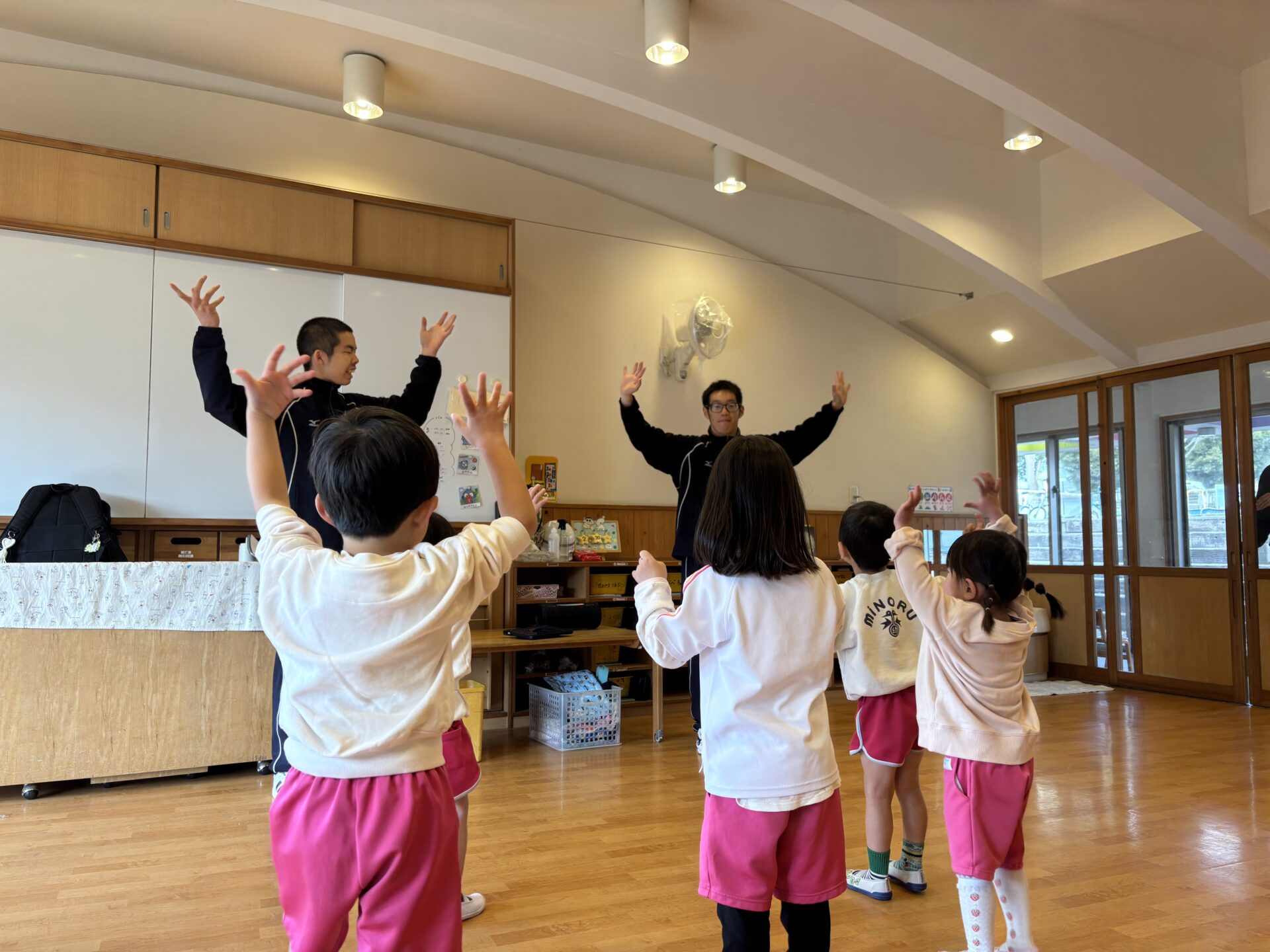 今日は東分校のお兄さんお姉さんがきてくれたね⭐︎ダンスと、お絵描きを一緒にしました♪