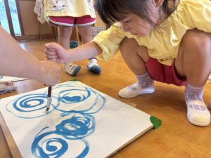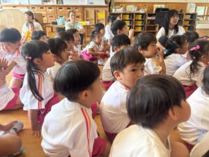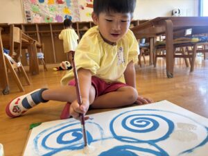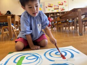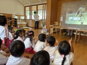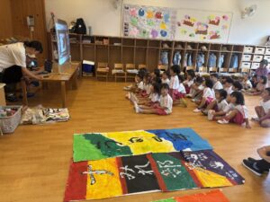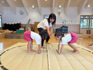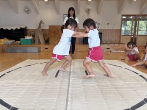 昨日年長さんのお相撲をみて、今日は本物のお相撲のビデオを見ました! のぼり旗も各クラス2枚作りますが、その旗にも注目しながら本物のお相撲を見ることができました⭐️ その後、お部屋でとんぼの絵の続きを行いました♪ ご飯を食べた後初めてお相撲練習をしました! 負けて悔しくて涙を流す子がいたり、勝って喜ぶ子もいました♪本番はどのような結果になるか楽しみです💖