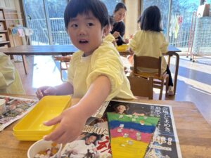 明日はもちつきと12月生まれのお誕生日会があります🎂お弁当を忘れずにお持ちください!