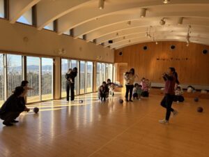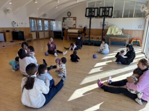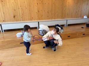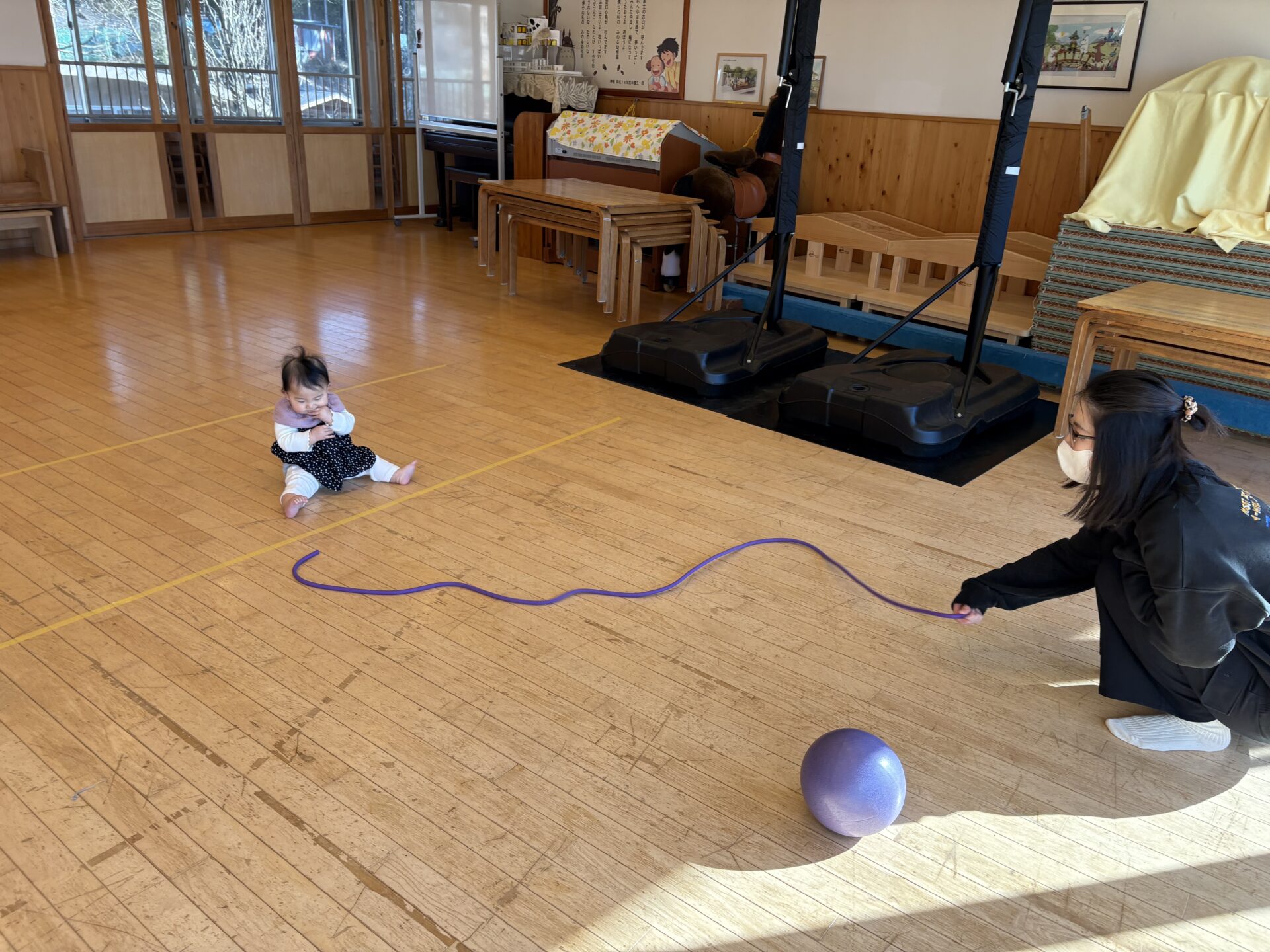 今日のトントゥは ちびっこ体操でした 外は寒いけどホールでいっぱい体を動かしてポカポカになったね ボールを転がしたり、ボールの上に乗ったり。 ロープで鬼ごっこしたり、ロープにヘビさんしたり、ひっぱりりっこもしたね プルプルぷりん、ばんそうこうのダンスも楽しかったね