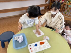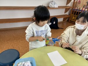 リズム🎵では、おもちゃのチャチャに合わせてすずが上手にできました♪
