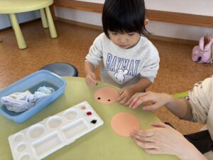 今日のすくすく教室は、ぱんだ🐼こあら🐨ひつじ🐏ぐみさんと一緒に秋見つけとしゃぼん玉🫧をして遊びました♪