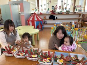 手形でサンタさんを作ってまわりをツリー🌲や星🌟やスノーマン☃️でデコレーションします