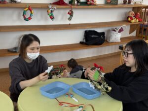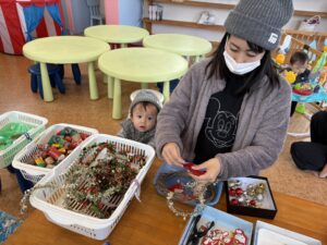 今日のトントゥはクリスマスリースを作りました 赤や緑のリボンやキラキラ サンタさん🎅やスノーマン☃️やクリスマスツリー🎄の飾り をいろんな大きさのつるにつけたね 小さいお友達はつける飾りを選んだり ママが作っているのをじーっと見ていたよ とっても可愛くできたね お家で飾ってちょっぴり早いけどクリスマス気分だね🎄 トントゥでは12月もクリスマス工作を予定しています お友達を誘って遊びに来てね