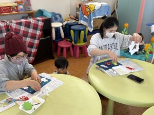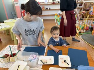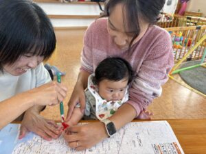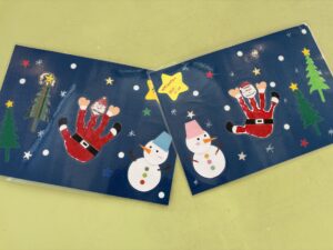 12/18のトントゥは クリスマス手形アートをしました 10:00〜14:00いつでもどうぞの講座だったのでたくさんのお友達が来てくれました 小さいお友達も手形ぺったんにチャレンジ 小さなおててのかわいい手形だったね 赤い絵の具でぺったんしてサンタさんに変身させたよ スノーマン☃️やツリー🌲や星🌟をデコレーションしてとても素敵にできたね