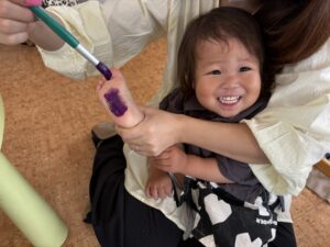 足の裏に絵の具をつけたらくすぐったくて笑っちゃったね