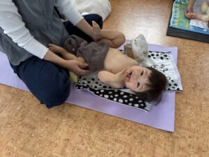 ママにタッチしてもらったり、おうたをうたいながらマッサージをしてもらってとっても気持ちよさそうでした。