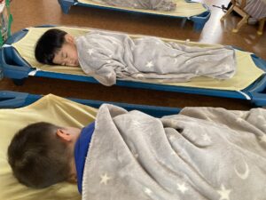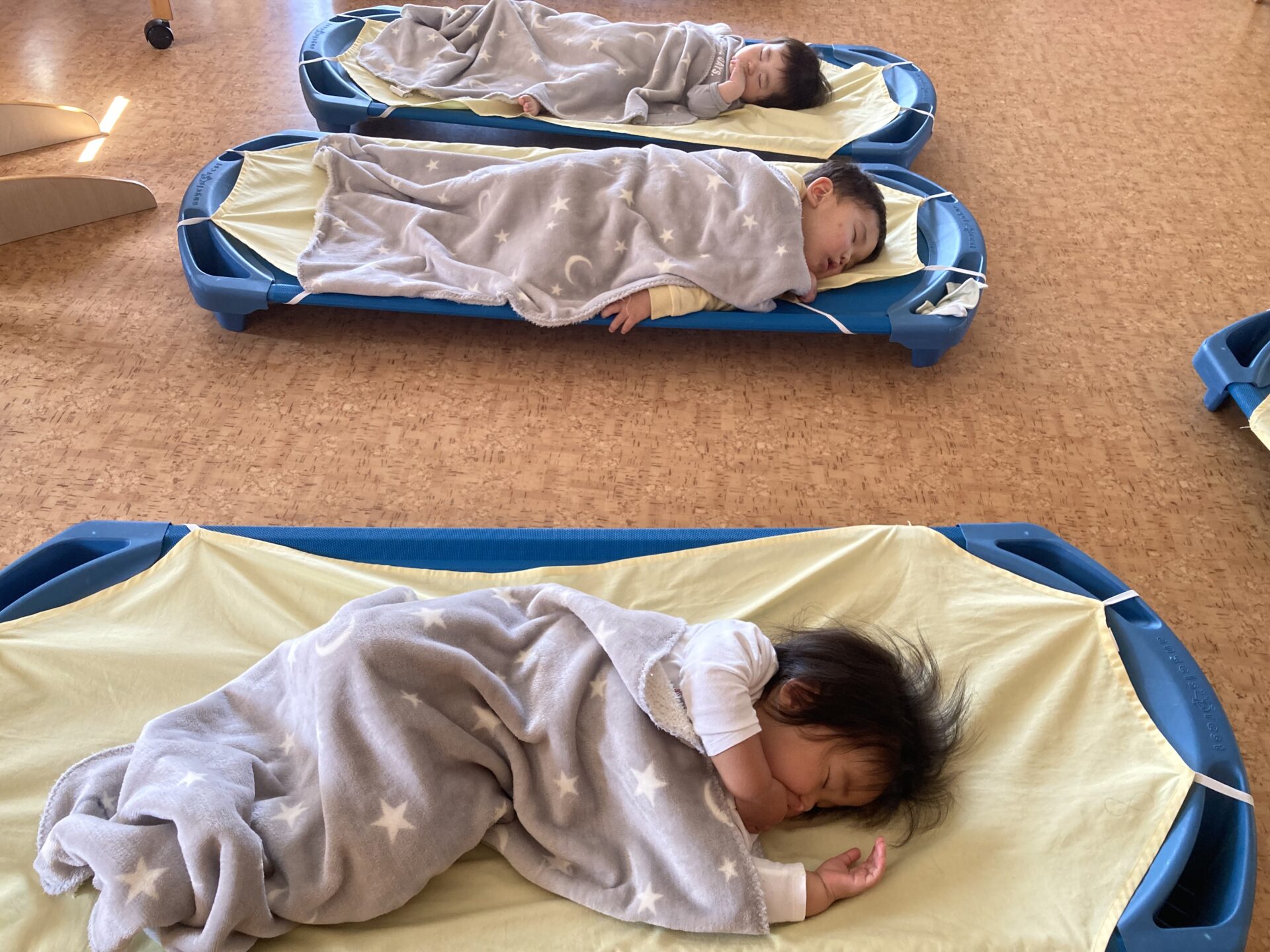 慣らし保育3週目になり 昨日から新しいお友達も一緒にお昼寝をしはじめました😴 みんなグッスリ可愛いお顔で眠っています😌💤 起きてからの午後のおやつも楽しみな時間だね😋 いっぱい寝ていっぱい食べて大きくなってね🥰