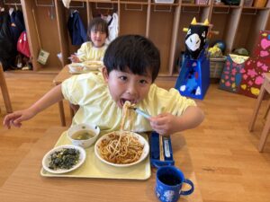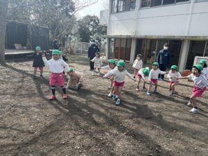 うめぐみさんは外で、だるまさんがころんだとしっぽとりとお部屋に戻り、ハンカチ落としを一緒に行いました😌