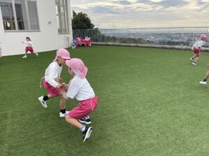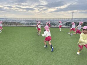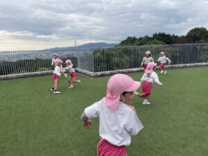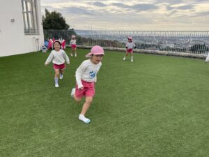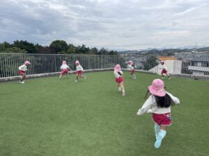 ランチの前に空の園庭に行き