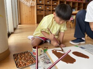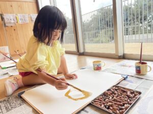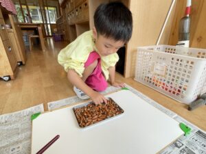 みんな、どんぐりを手に取り、近くでよーく見ながら、伸び伸び楽しそうに描いていましたよ🎨