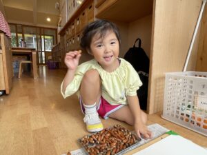 「これは、帽子付きどんぐりだー!!」などなど、子どもたちは、良い目と、良い心で、様々なことを発見し、言葉で表現していました。