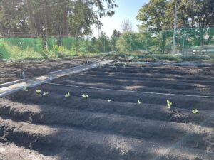 今日、すみれ組は、先日植えた、ほうれん草の水やりをしました。