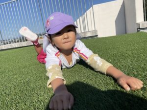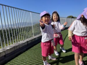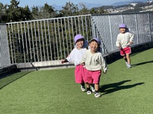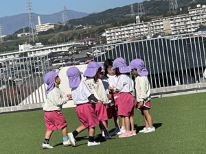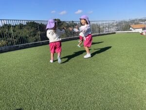 今日、すみれ組では、音楽会の練習の前に、空の園庭でたくさん遊んだね。