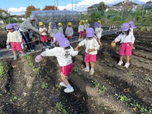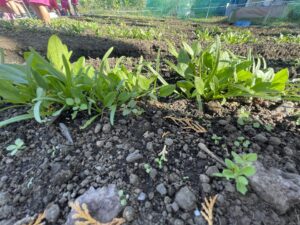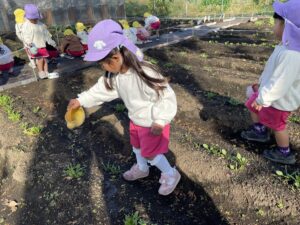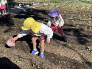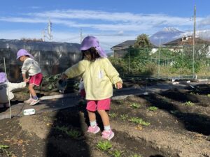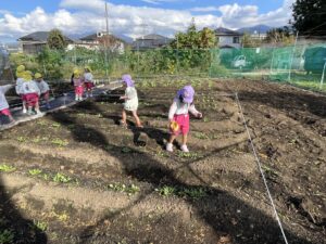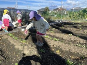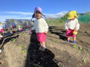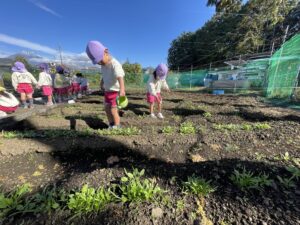 畑では、ほうれん草の芽が、だいぶ大きくなり、ますます愛着がわいてきたみんな♡