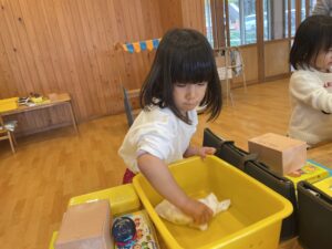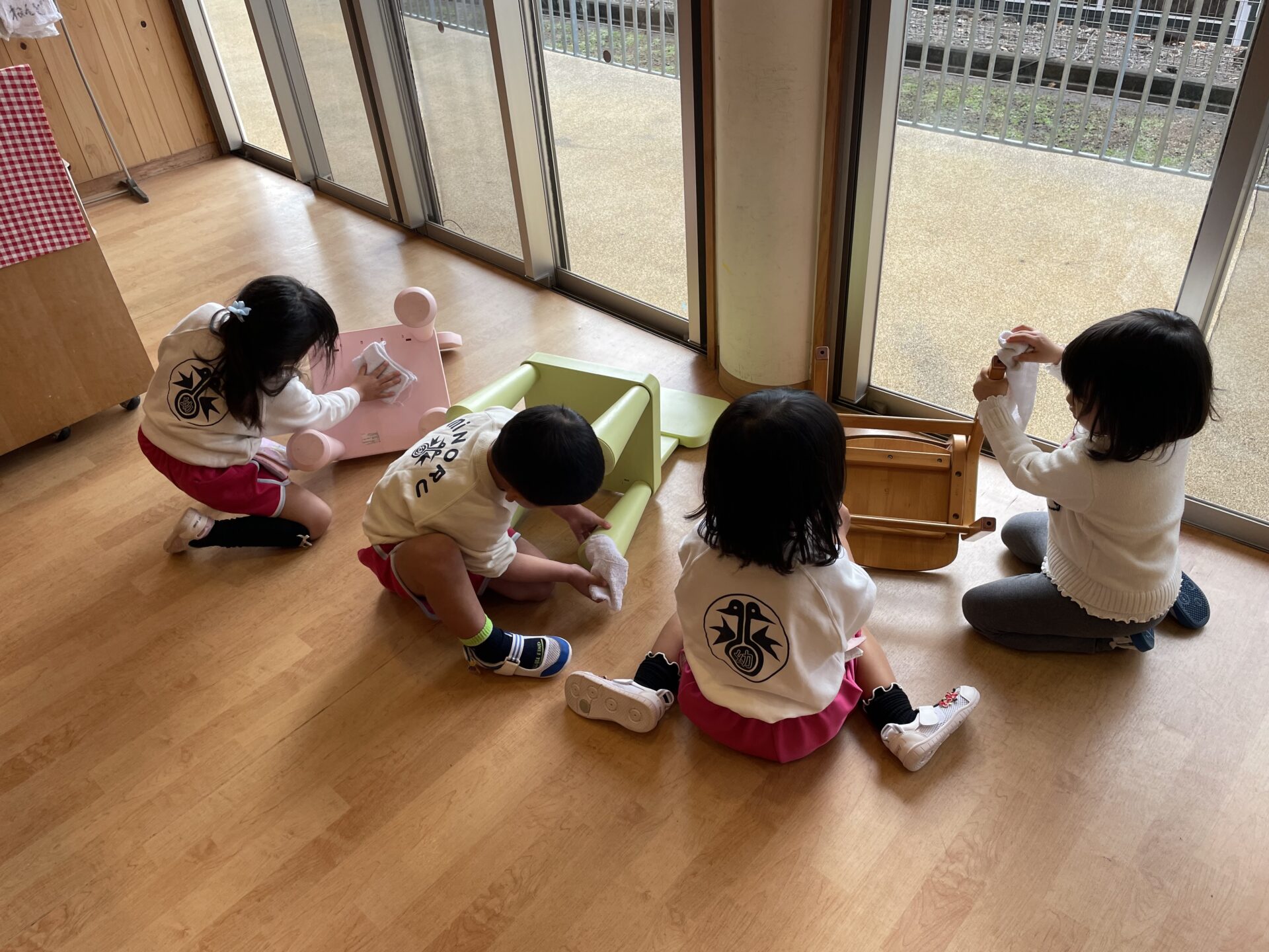 一人一枚、雑巾を手に持つと、みんな、やる気十分👍
