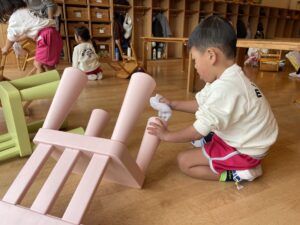 お道具箱やロッカー、椅子など、汚いところを見つけて、隅から隅まで、しっかりお掃除していましたよ。
