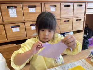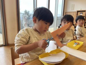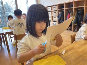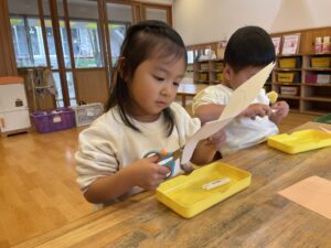はさみは、個人差があるけど、みんな、落ち着いてゆっくりと切ることができました!!