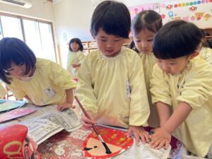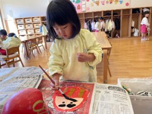 「ぼくは、おこったまゆげにするんだ!」など、みんな、それぞれこだわりがあり、個性豊かな、素敵なだるまができました!