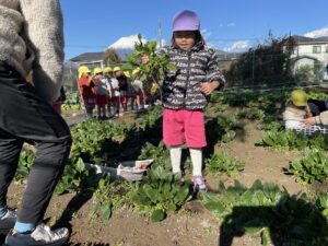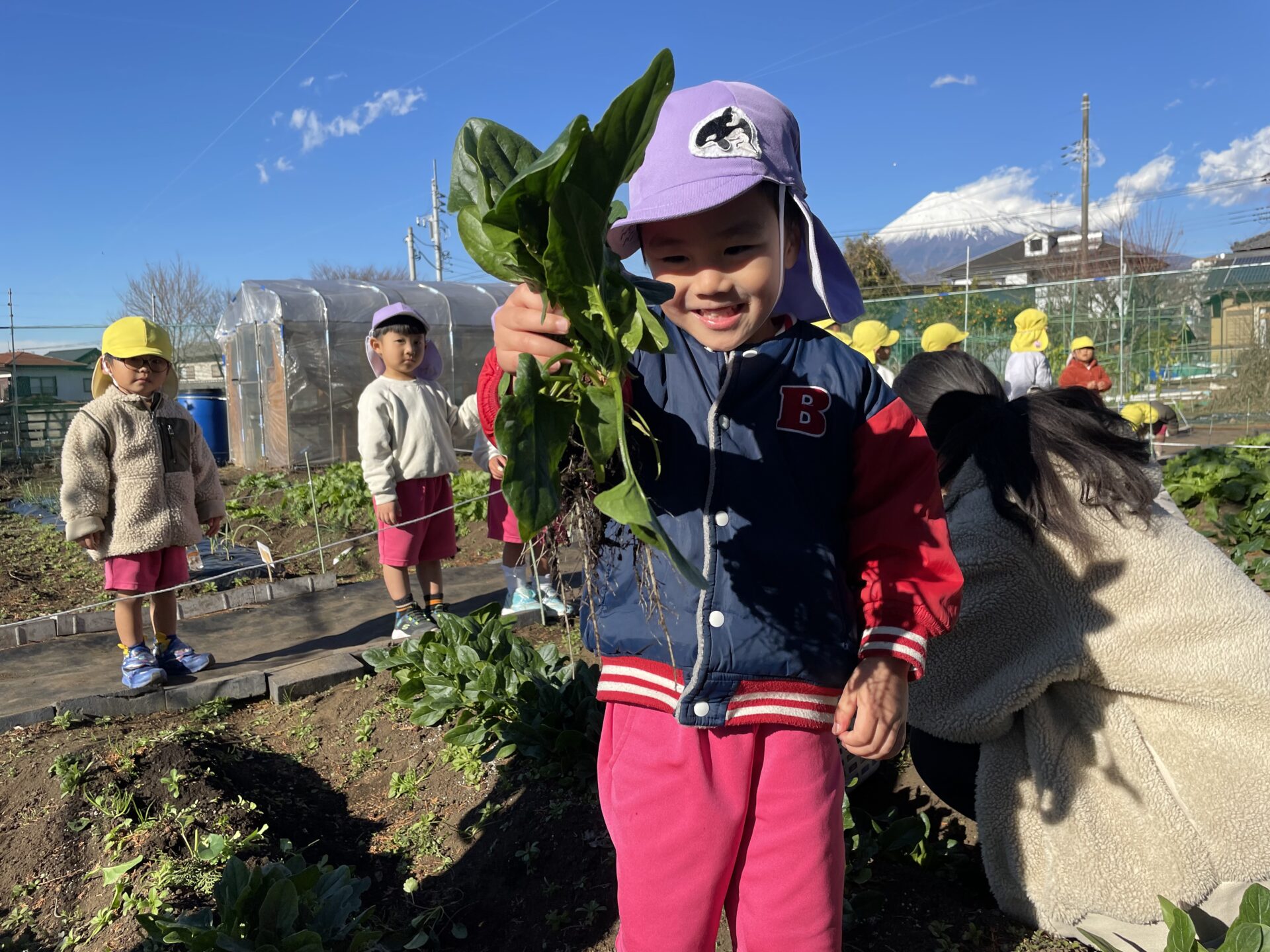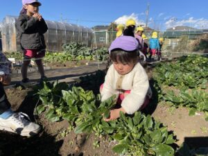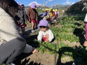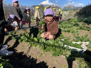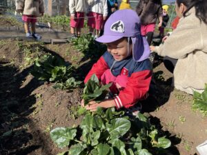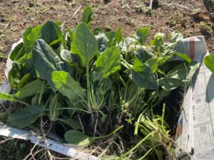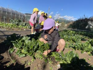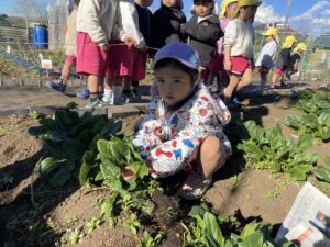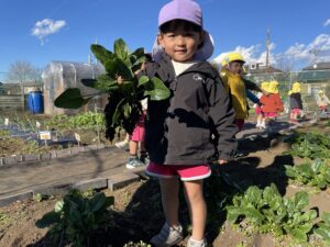 午後は、ほうれん草の収穫をしました。