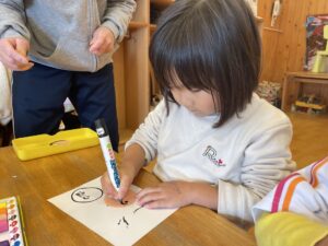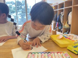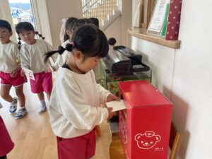 郵便ごっこでは、好きなお友だちを一人選んで、その子のために、心を込めて、お手紙を書きました。