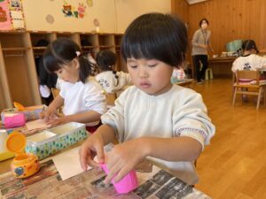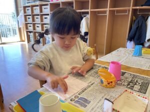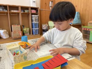 製作中は、先生に教えてもらったことを、復唱する子がたくさんいました。