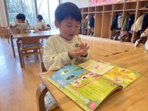 月の絵本では、【進級】をテーマにしたお話に、みんな興味津々。