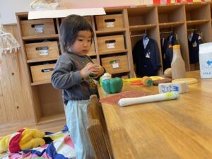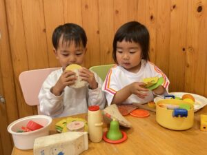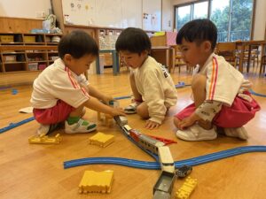 絵本をみんなでみたり、プラレールで遊んだり、おままごとで遊んだり…