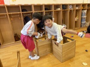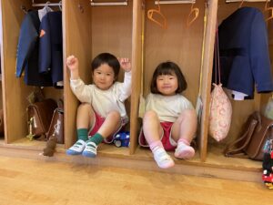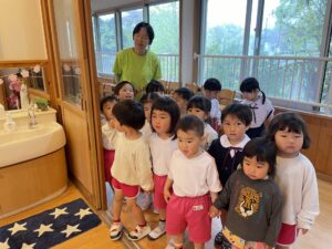 今日、すみれ組さんは、お部屋の探検をしました。