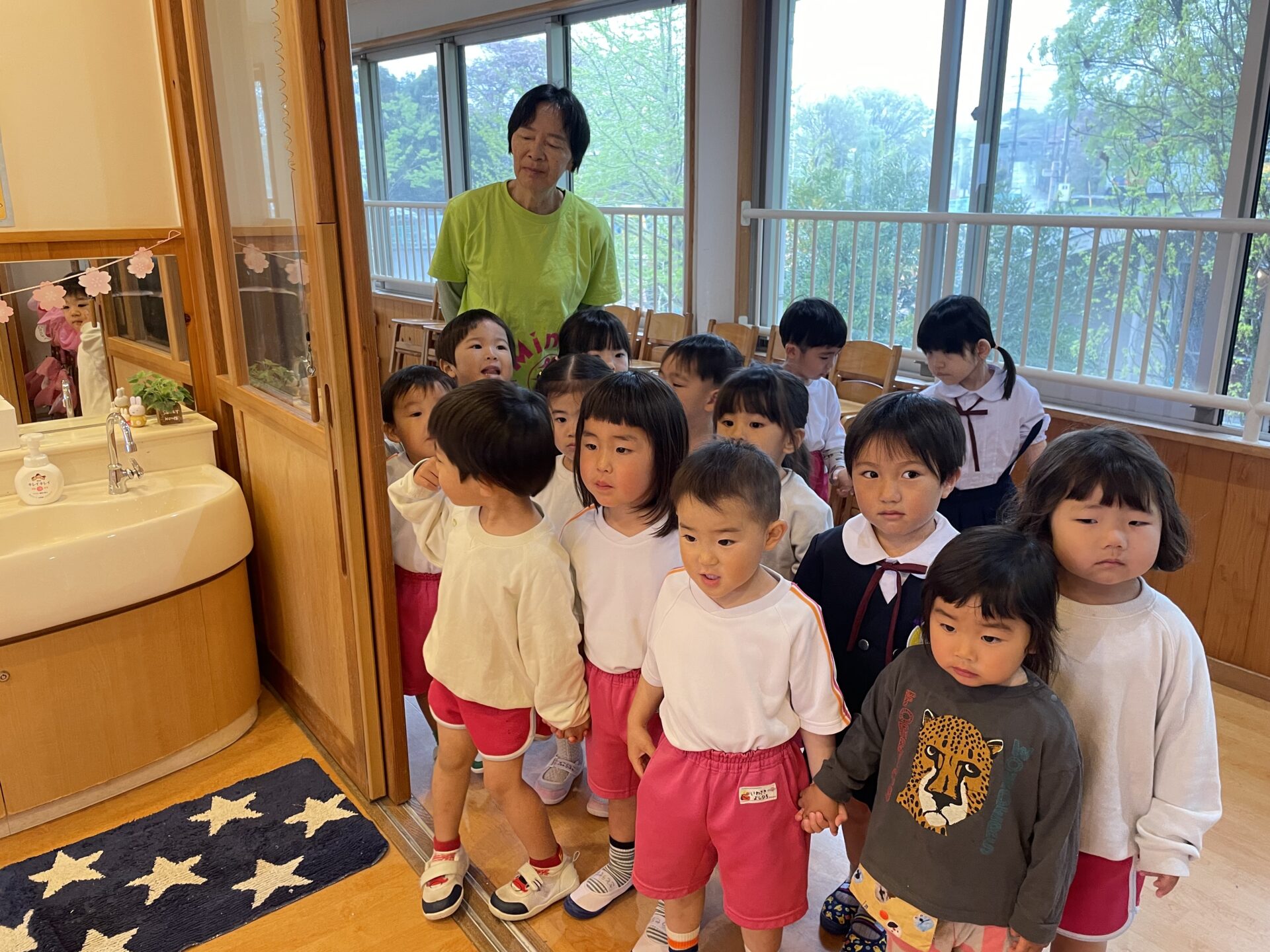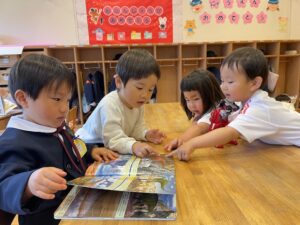 幼稚園の中には、お部屋がいっぱいあって、先生たちもたくさんいるんだよ…と伝えると、子どもたちはびっくり👀