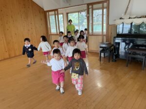 すみれ組さんは、まだお椅子に座れなくて、すぐフラフラしちゃうんだよね。。