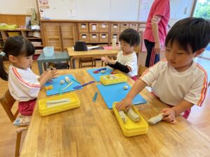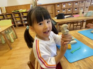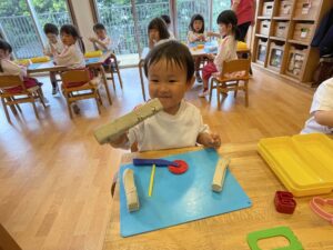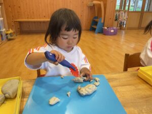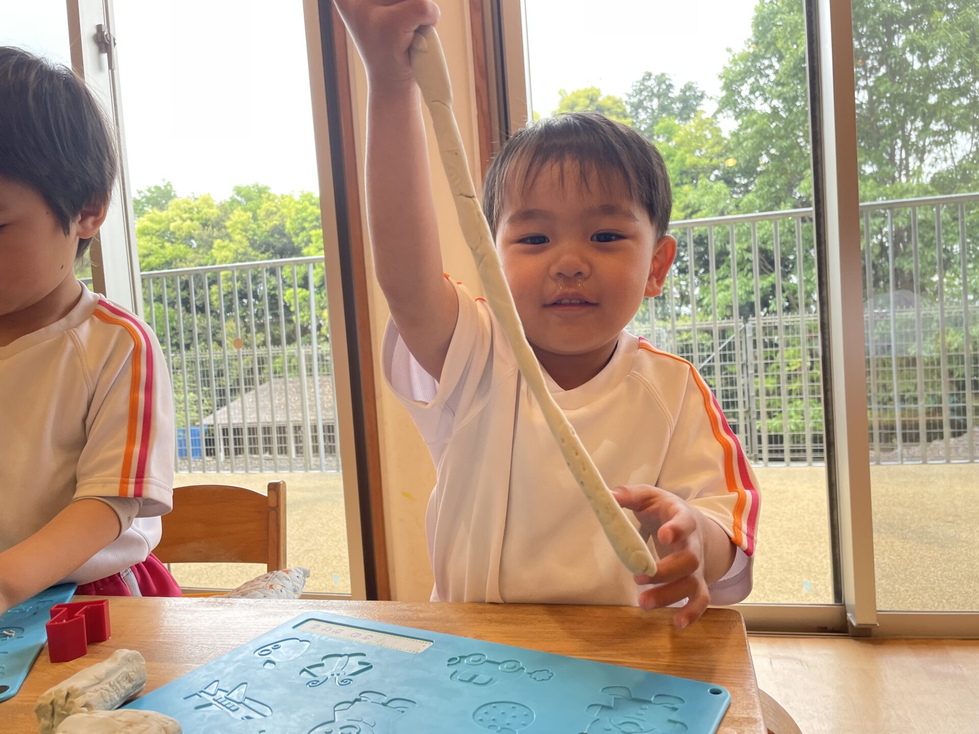 今日は、粘土遊びのやり方やお約束、片付け方までを先生に教えてもらった後、みんなで粘土で遊びました!