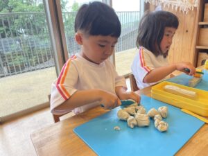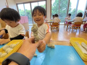 こいのぼりや、へび、お団子や雪だるま、クッキーなど、みんな、上手に作れたね。