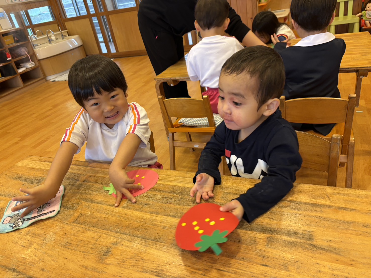 新しい年度が始まって、毎日楽しく過ごしています♩ 昨日のたんぽぽぐみさんは、シール遊びでいちごを作りました🍓❤️ 上手にシールを貼っておいしそうなイチゴができたね☺️ 環境が変わって不安な気持ちの子もいると思うけど、毎日楽しいことしてゆっくり過ごそうね〜❣️ 明日も元気に幼稚園にきてね🌈