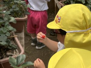 今日はいちご狩りをしに畑に行きました〜❤️🍓 真剣に葉っぱの中を探していました👀 おいしいいちごを食べられたね🤭 いちご狩りのあとは、 お部屋でてんとう虫の制作をしました🐞 てんとう虫ってどんな模様だったかな?とみんなで思い出しながらつくりました💭🤔 世界にひとつだけのてんとう虫ができたね😽 シールの貼り方もクレヨンの使い方も、とっても上手でした👍🏻✨ 壁面に飾るので、是非ご覧になってください💫 明日は空の園庭で遊ぶよ🎵 元気に幼稚園に来てね!