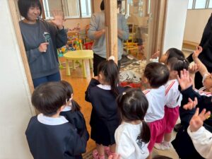 おねえさん、おにいさん、ちっちゃいお友だち、先生たちにたくさん会えて手も振れたね👋🏻☺️