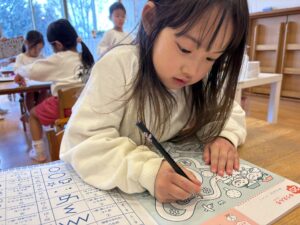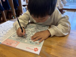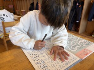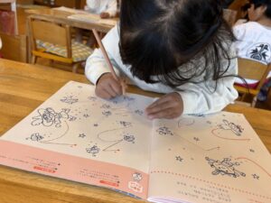 今日は年中さん最後の せんあそびをしました✏️ 三学期から鉛筆でせんあそびを 行い始めましたが、 持ち方が上手になったり、筆圧が濃くなったり 真っ直ぐに線をを書けたりと 成長を感じました☺️✨ 集中力も上がり、静かに真剣に 取り組んでいました💮 せんあそびをした後は、 お天気が良かったのでテラスで ランチを食べました😋☀️ ばら組さんが終わるまであと少しだね💧 残りあと少したくさん楽しもうね🌹💖