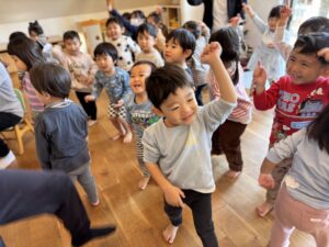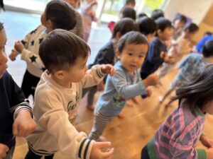 ぱんだ組さんとひつじ組さんと一緒に朝の会をしました☀️