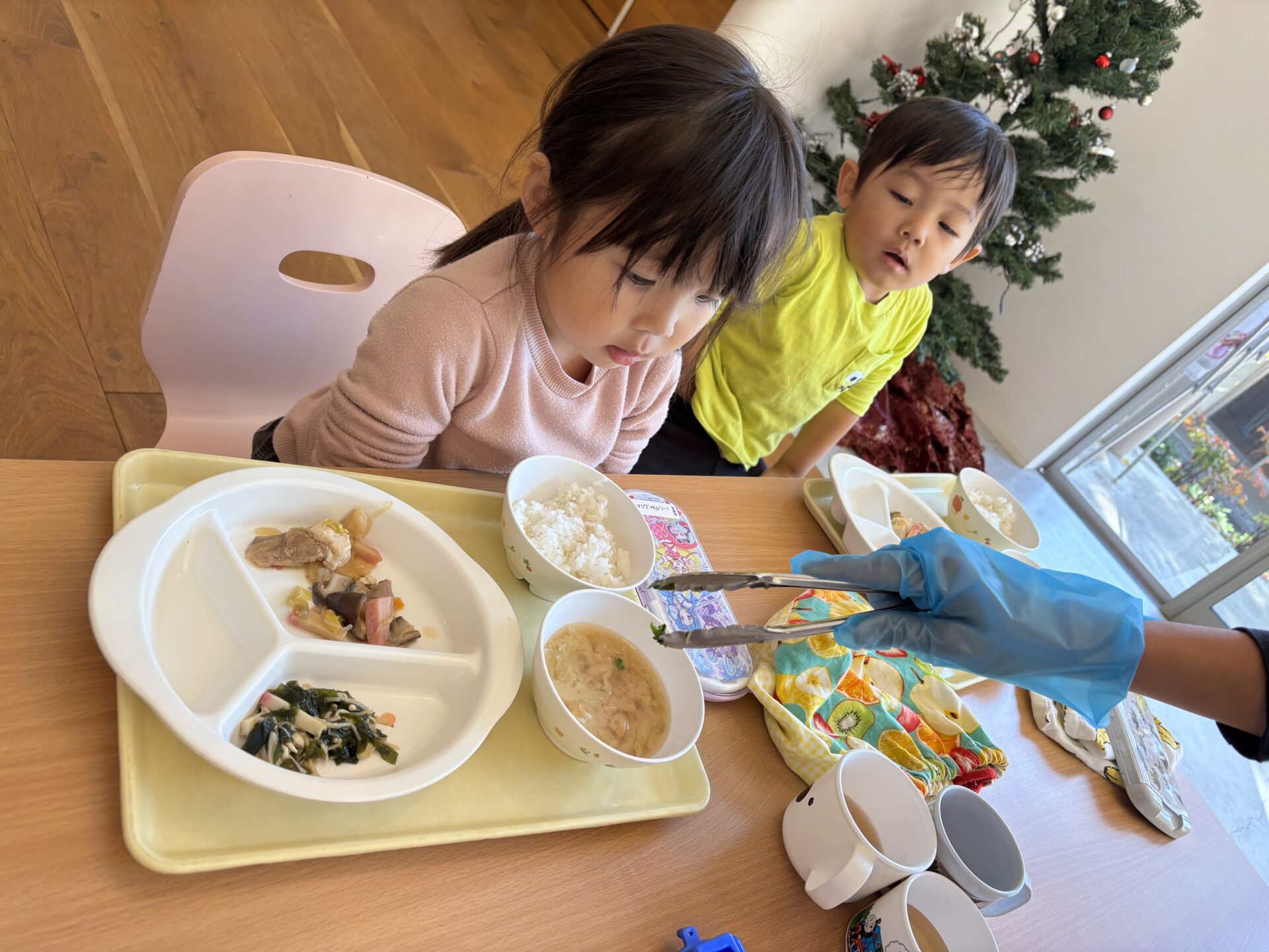 ぱんだ•こあら組が育てている白菜がぐんぐん大きくなってきました🌱☀️ 今日は、 給食の先生が白菜の間引き菜を茹でてくれたので、お味噌汁の中に入れてみんなで食べました☺️🥬 お野菜が苦手なお友達も食べていたね! 美味しかったね🩷 みんなが、 お水をあげてくれたり、 「おおきくな〜れ!!」 って魔法をかけてくれたおかげだね☺️🌈