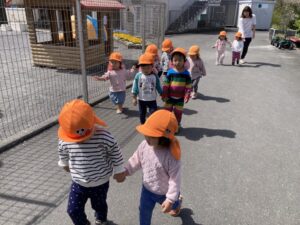 みんな手を繋いで歩くのも