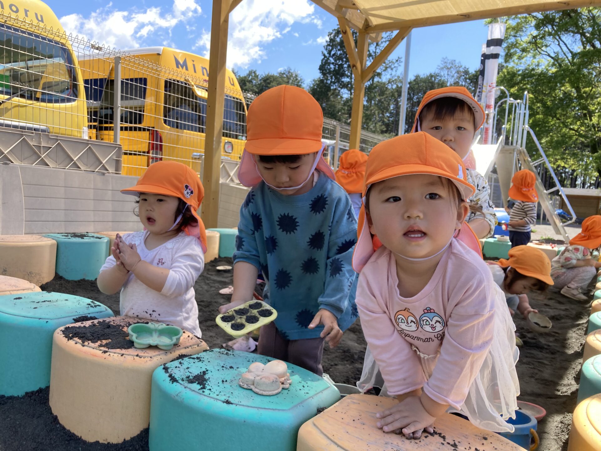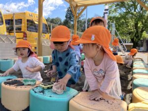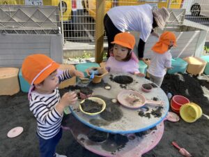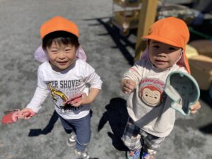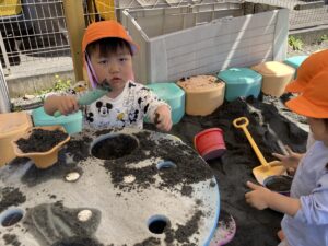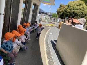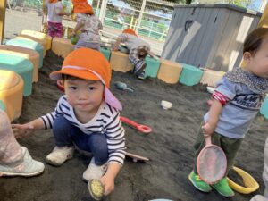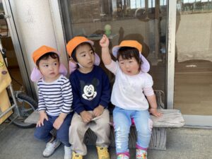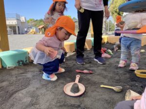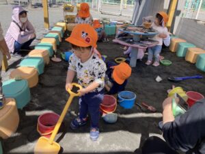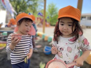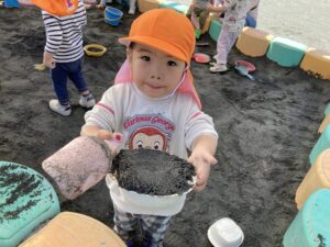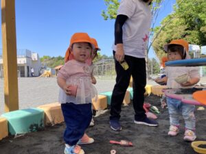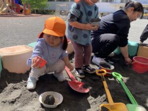 今日は暖かい1日でしたね☀️ 元気に朝の体操をした後 ベンチで一休みして水分補給をしてから トントゥの日に来ていたお友達と一緒に お砂場で遊びました🫶 みんな美味しそうなごはんを作って お友達や先生に「どうぞ💕」って ごちそうしてくれたね🤗 みちよ先生となおみ先生が読んでくれた ワンタくんの紙芝居も面白かったね🐶 お土産に貰った鯉のぼり来週また作ろうね〜🎏 明日はみんなが楽しみにしているなかよし親睦会🐴🎶 お家の人と一緒にいっぱい楽しもうね〜🥰