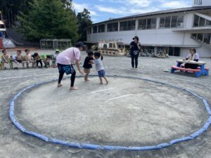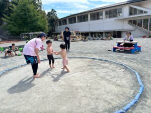 鉄棒遊びをした後は、お相撲大会の練習を頑張ったね✨️