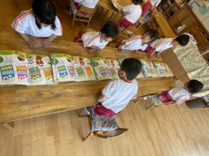 みんなが貼れたあとは月の絵本を繋げて